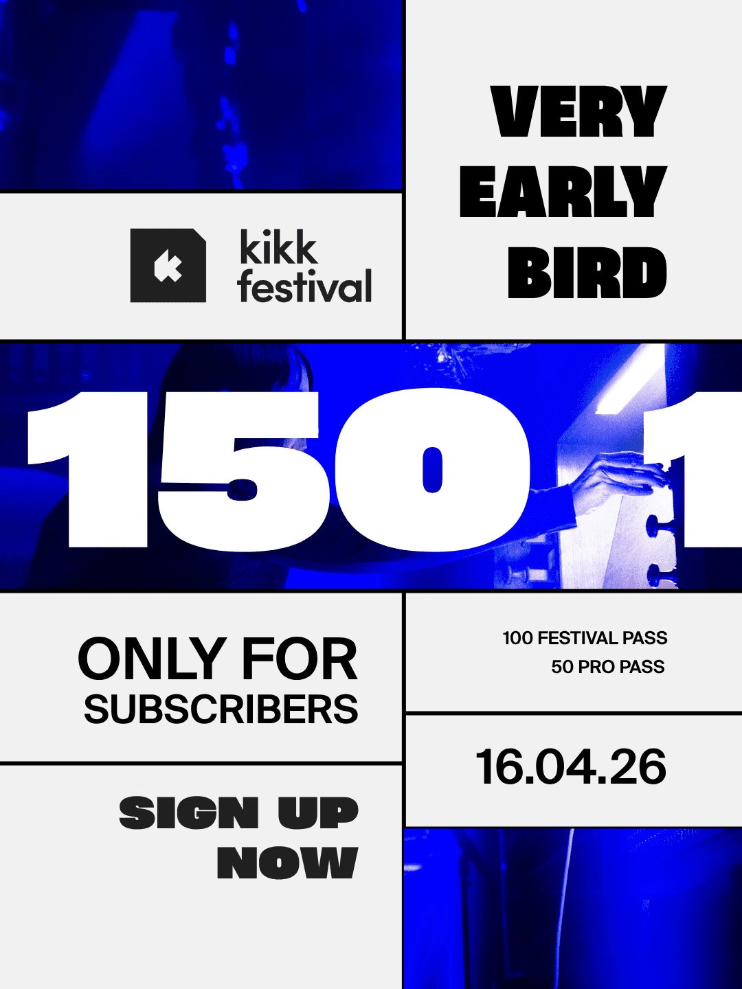 Des visuels qui captent l'univers unique du festival. À partir des photos et prises de vues existantes du festival, je crée des contenus adaptés à chaque réseau (copy, visuels, reels, stories …) en m'assurant que tout reste dans l'univers graphique du KIKK.
